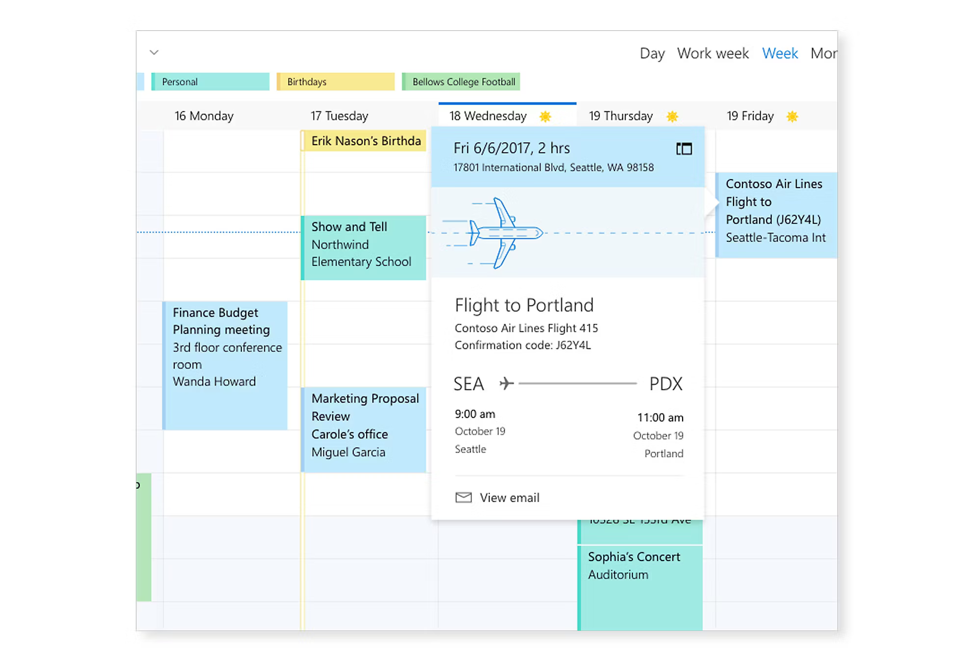 日历系统可有效用于时间管理,它不仅能进行基本的预约和履约安排,还拥有其他强大功能。它能自动捕获电子邮件中的事件(如预定航班和酒店),并根据用户所在位置提供会面地点建议。